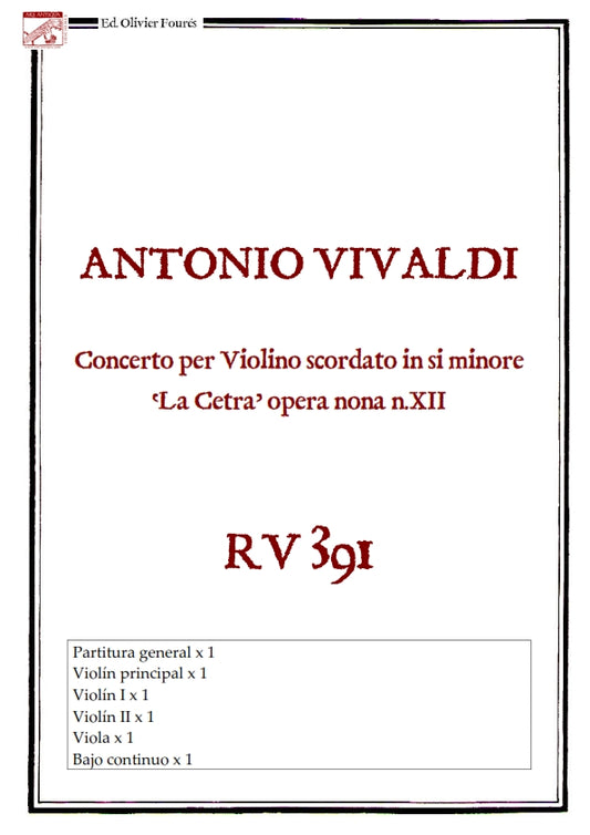 RV 391 Concerto per Violino scordato in si minore. "La Cetra" Opera nona n.XII