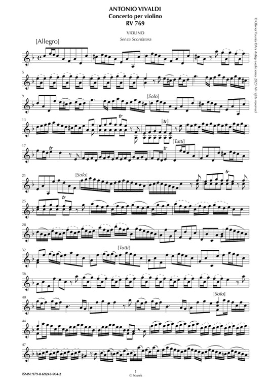 RV 393 / RV 769 Concerto per Viola d´Amor o Violino in in re minore