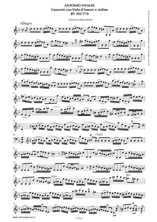RV 395 / RV 770 Concerto per Viola d´Amor o Violino in in re minore