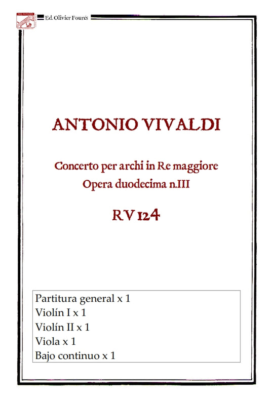 RV 124 Concerto per archi in Re maggiore. Opera duodecima n.III