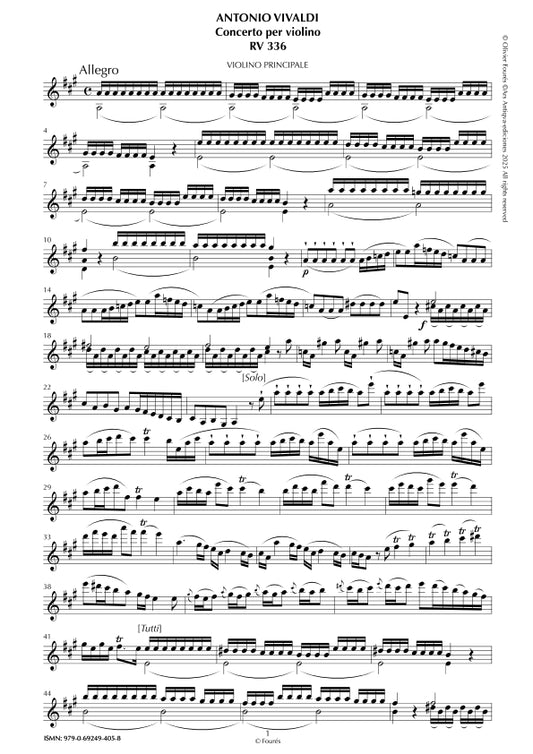 RV 336 Concerto per Violino in La maggiore opera undecima n.III
