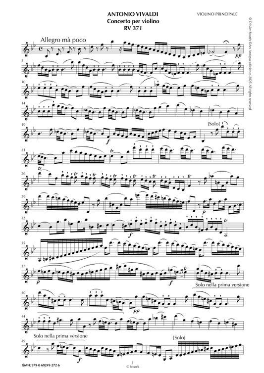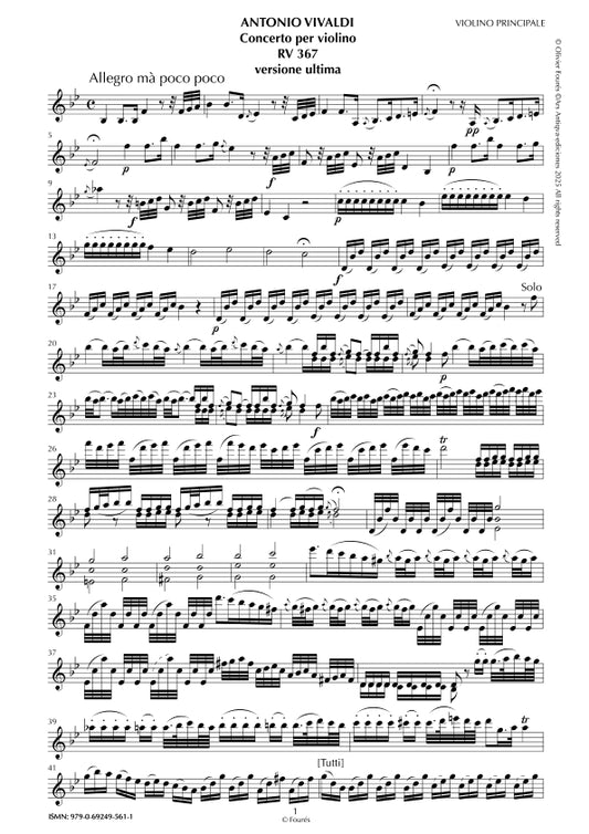 RV 366 Concerto per Violino in Sib maggiore "IL CARBONELLI" per Anna Maria