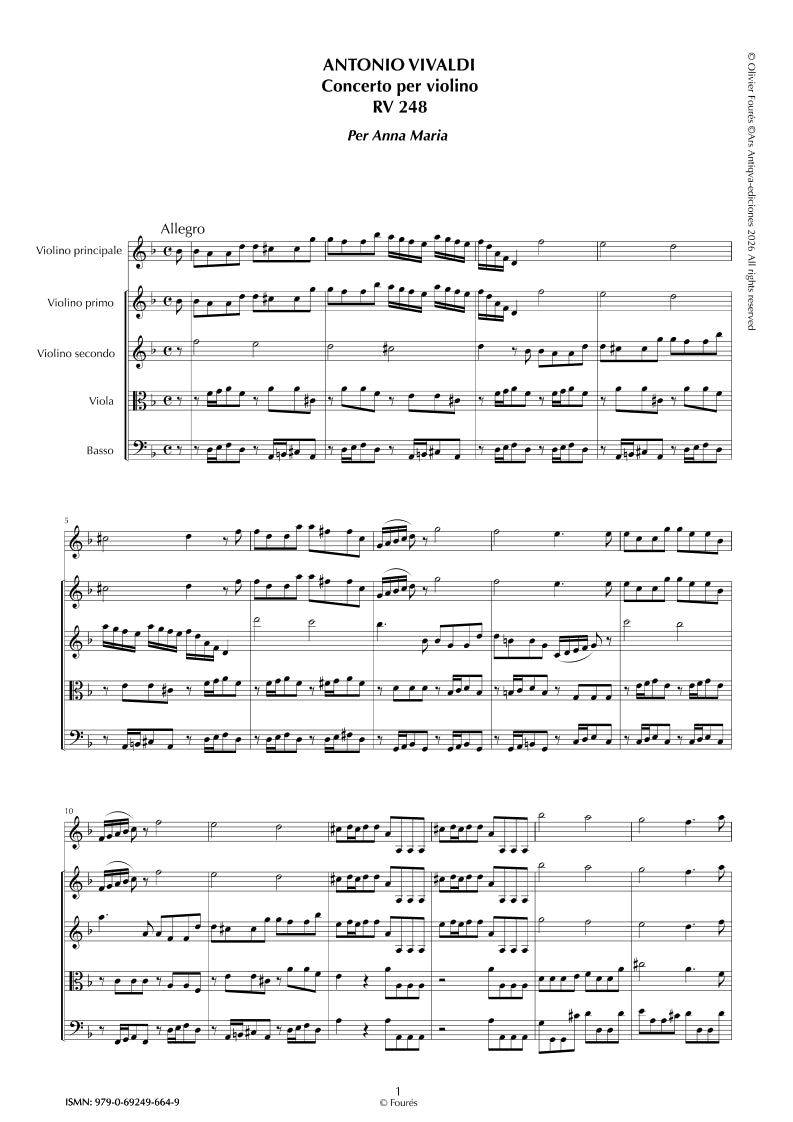 RV 248 Concerto per Violino in re minore "per Anna Maria"