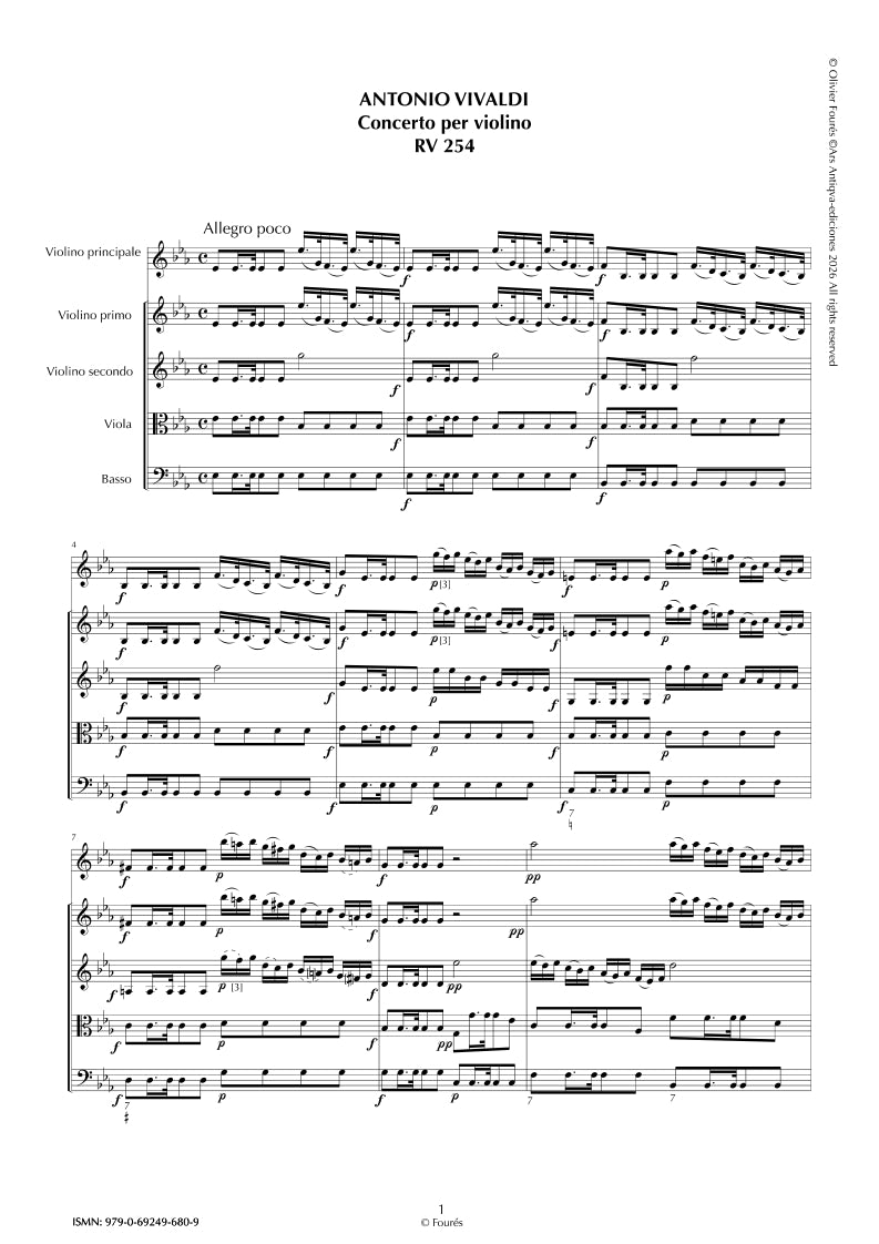 Vivaldi RV254 Concierto para violín, orquesta de cuerdas y bajo continuo en MIb mayor.