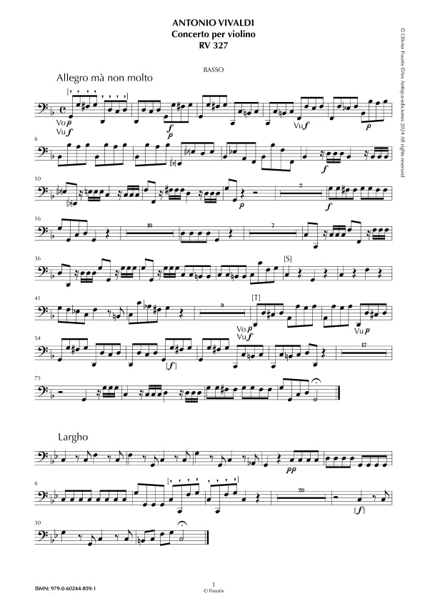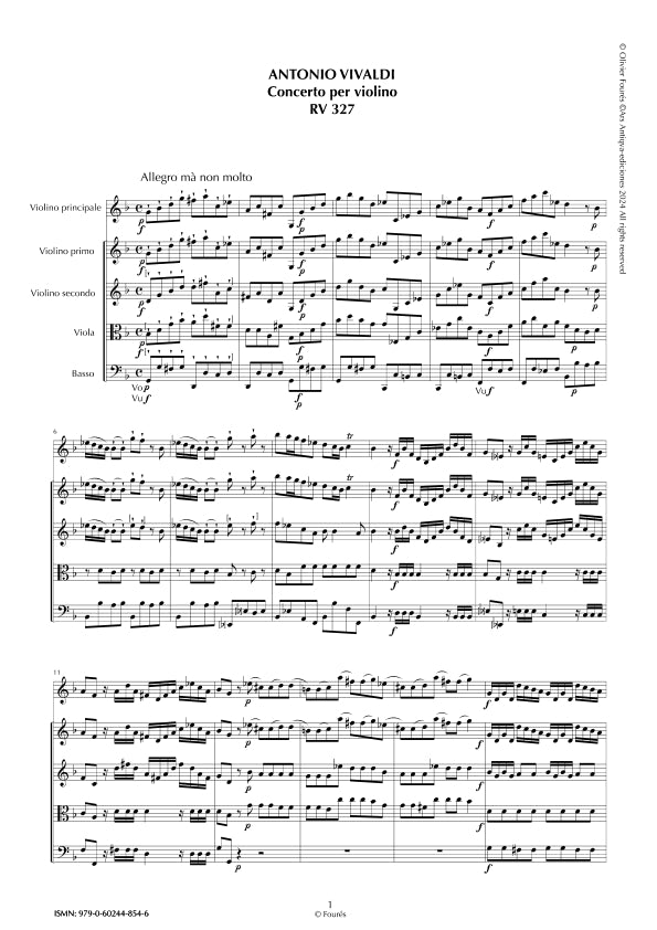 Vivaldi RV327 Concierto para violín, orquesta de cuerdas y bajo continuo en sol menor.