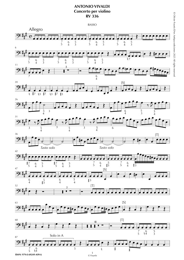 RV 336 Concerto per Violino in La maggiore opera undecima n.III