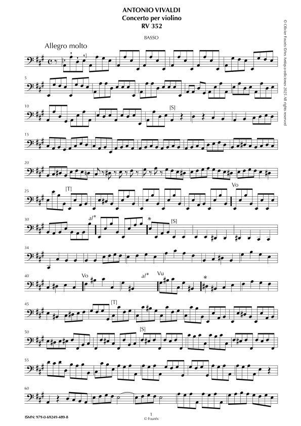 Vivaldi RV352 Concierto para violín, orquesta de cuerdas y bajo continuo en La mayor.