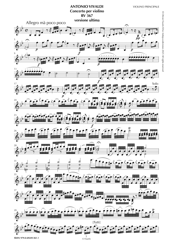 Vivaldi RV 367 Concierto para Violín, orquesta de cuerdas y Bajo continuo en SIb mayor