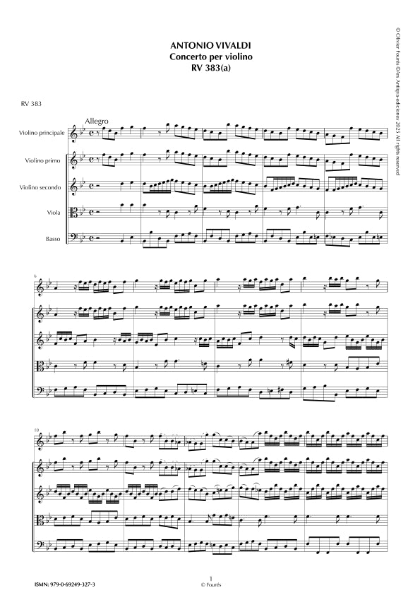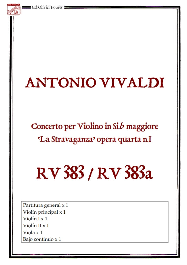 RV 383 / RV 383a Concerto per Violino in SI-b maggiore "La Stravaganza" opera quarta N.I