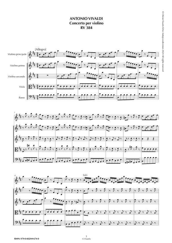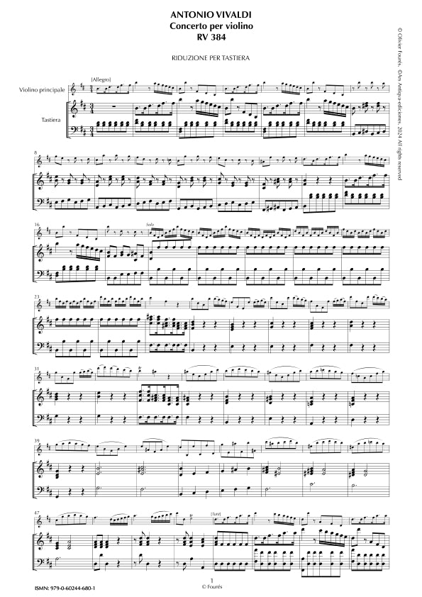 Vivaldi RV384 Concierto para violín, orquesta de cuerdas y bajo continuo en si menor.