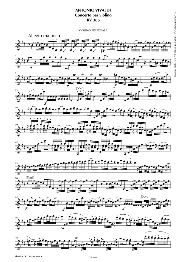 Vivaldi RV386 Concierto para violín, orquesta de cuerdas y bajo continuo en si menor.