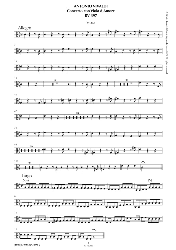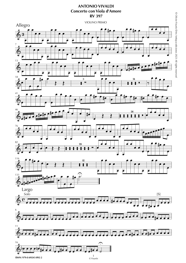 RV 397 Concerto per Viola d´Amor in in la minore