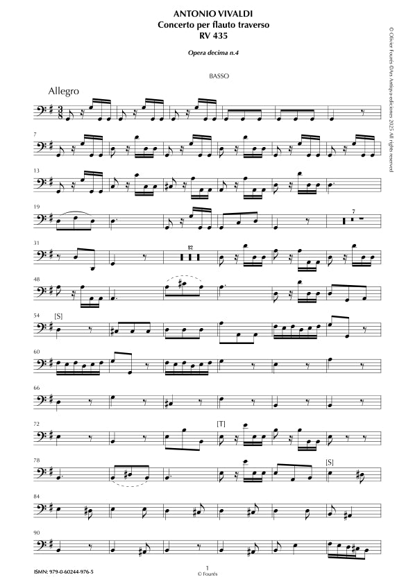 RV 435 Concerto per Traverso in Sol maggiore. Opera decima n.IV