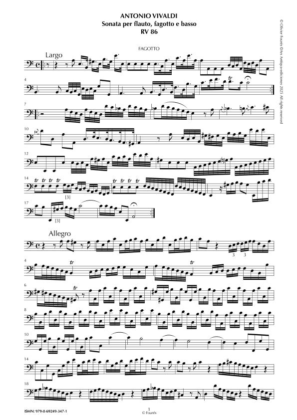 RV 86 Sonata per Flauto, Fagotto e Basso in la minore