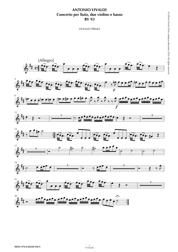 Vivaldi RV93 Concierto para Laúd, 2 Violines y bajo continuo en Re mayor.