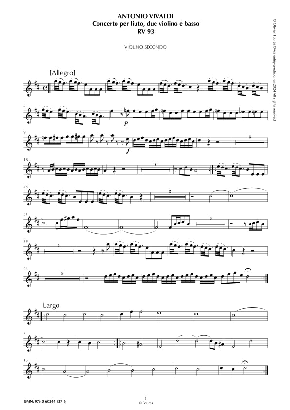 RV 93 Concerto per Liuto, 2 Violino e Basso in Re maggiore